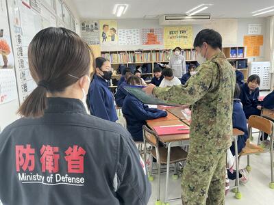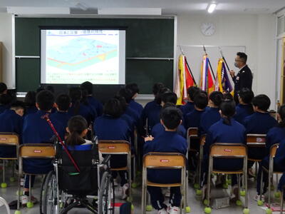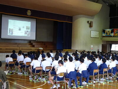 キャリア教育の一環として、看護師、介護福祉士の方から介護や医療の仕事について学びました。