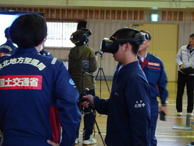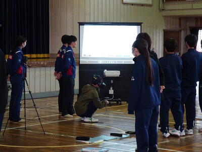北陵中学校体育館では、ドローンを操作したりVR体験学習を行いました。