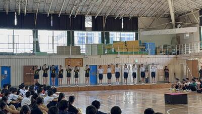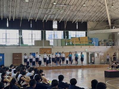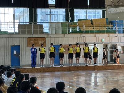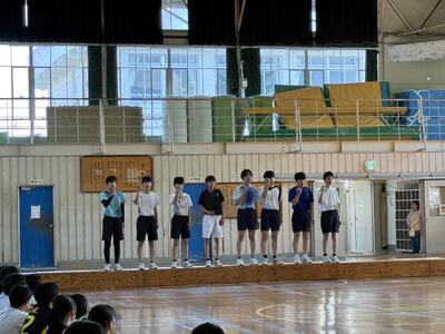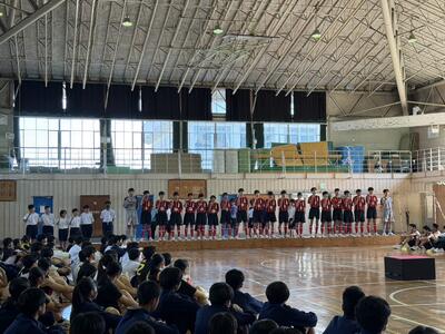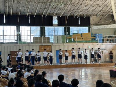本日から行われる市中総体に向けて、全校でお互いに応援しあいました。