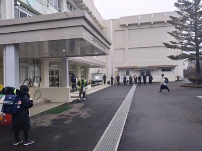 冷え込む朝でしたが、おやじの会の皆様によるあいさつ運動で、明るく温かい3学期初日を迎えられました。