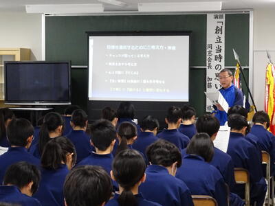 講師に同窓会長の加藤純先生をお迎えし、開校当時からのお話しをいただきました。